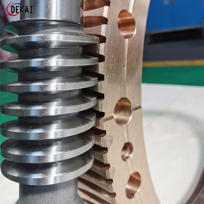 分度精度高,側(cè)隙可調(diào)整至0.01~0.03Mmm;齒面接觸穩(wěn),不會(huì)改變中心距。調(diào)整標(biāo)準(zhǔn),方便可靠。裝配靈活,裝配時(shí),用調(diào)整環(huán)來(lái)獲得合適的嚙合側(cè)隙。使用中如果因?yàn)槟p導(dǎo)致傳動(dòng)間隙增大,只要調(diào)整一下蝸桿的軸向位置,可以使蝸桿蝸輪傳動(dòng)副恢復(fù)到原來(lái)的精度,不需要更換新的蝸桿,蝸輪,比較實(shí)用。蝸桿材質(zhì)采用40Cr,42CrMo、38CrMoAl合金鋼。蝸桿采用錫青銅ZCuSn10Pb1離心澆鑄,具有高強(qiáng)度耐磨性。