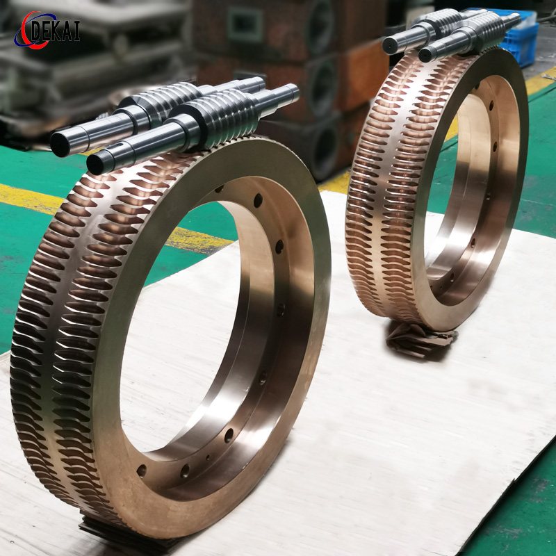 分度精度高,側(cè)隙可調(diào)整至0.01~0.03Mmm;齒面接觸穩(wěn),不會(huì)改變中心距。調(diào)整標(biāo)準(zhǔn),方便可靠。裝配靈活,裝配時(shí),用調(diào)整環(huán)來(lái)獲得合適的嚙合側(cè)隙。使用中如果因?yàn)槟p導(dǎo)致傳動(dòng)間隙增大,只要調(diào)整一下蝸桿的軸向位置,可以使蝸桿蝸輪傳動(dòng)副恢復(fù)到原來(lái)的精度,不需要更換新的蝸桿,蝸輪,比較實(shí)用。蝸桿材質(zhì)采用40Cr,42CrMo、38CrMoAl合金鋼。蝸桿采用錫青銅ZCuSn10Pb1離心澆鑄,具有高強(qiáng)度耐磨性。