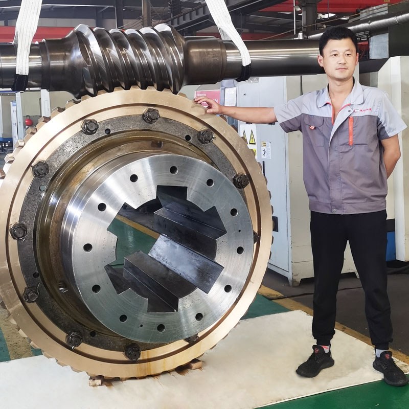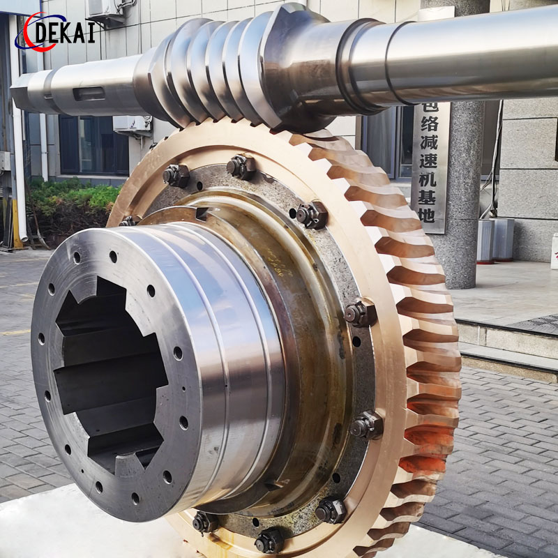 承載能力大:平面二次包絡蝸輪副是以一個平面為母面,通過相對圓周運動,包絡出環面蝸桿的齒面,然后再以蝸桿的齒面為母面,通過相對運動包絡出蝸輪的齒面而形成的。用這種方法加工出的平面二次包絡蝸桿副,具有以下特征:1、承載能力大:平面二次包絡環面蝸桿能多齒同時進入嚙合,增 大了接觸面積,減少了齒面壓力,承受大的沖擊載荷。蝸桿蝸輪的接觸線是沿齒高方向上,并且齒面的嚙合是在接觸線上,具有很小的相對曲率,使接觸應力減少。蝸桿和蝸輪在嚙合中同時有兩條接觸線進入工作區域。這和增加嚙合齒數一樣,可提高承載能力。精磨削的蝸桿齒面,表面粗糙度Ra0.8。高質量的蝸桿幾何尺寸和表面粗糙度,保證耐磨防止大負荷時油膜破壞。蝸桿的齒面是經過氮化熱處理后精制而成,齒面硬度HRC≥50,高硬度的蝸桿在設計上保證有足夠的剛性以致于它的彎曲和其它因素不影響上述嚙合特性。