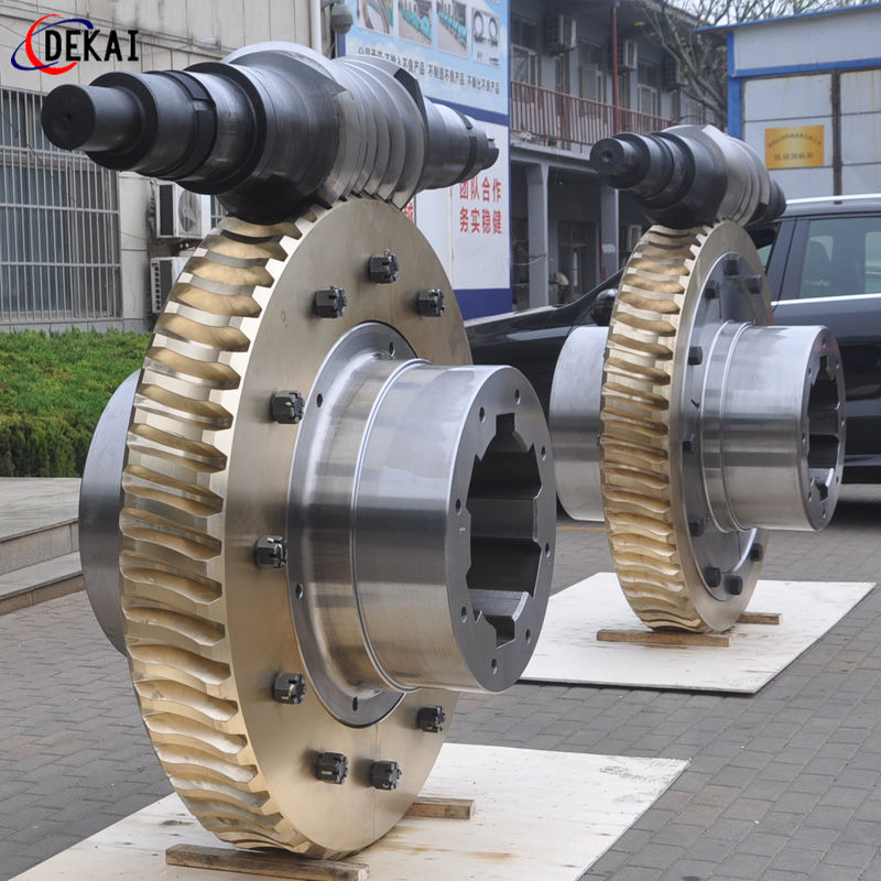 承載能力大:平面二次包絡蝸輪副是以一個平面為母面,通過相對圓周運動,包絡出環面蝸桿的齒面,然后再以蝸桿的齒面為母面,通過相對運動包絡出蝸輪的齒面而形成的。用這種方法加工出的平面二次包絡蝸桿副,具有以下特征:1、承載能力大:平面二次包絡環面蝸桿能多齒同時進入嚙合,增 大了接觸面積,減少了齒面壓力,承受大的沖擊載荷。蝸桿蝸輪的接觸線是沿齒高方向上,并且齒面的嚙合是在接觸線上,具有很小的相對曲率,使接觸應力減少。