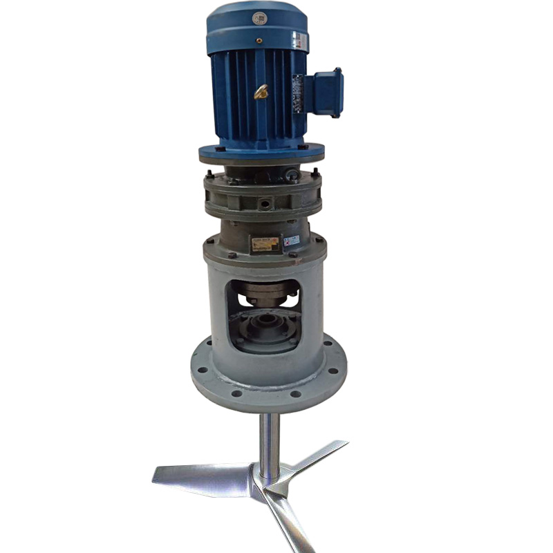 側(cè)入式攪拌機:側(cè)入式攪拌機是將攪拌裝置安裝在設(shè)備筒體的側(cè)壁上,攪拌機上的攪拌器通常采用軸流型,以推進式攪拌器為多,在消耗同等功率情況下,能得到高的攪拌效果,功率消耗僅為頂攪拌的1/3~2/3,成本僅為頂攪拌的1/4~1/3。轉(zhuǎn)速可在200~750r/min。廣泛用于脫硫、除硝以及各種大型貯罐或貯槽的攪拌。特別是在大型貯槽或貯罐中利用一臺或多臺側(cè)入式攪拌機一起工作,在消耗低能耗的情況下便可以得到良好的攪拌效果。