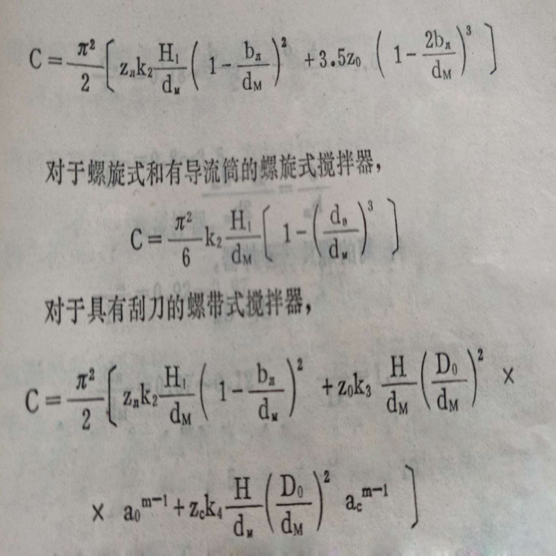 式中Zo-------具有刮刀的螺帶式攪拌器的立桿數(shù)或者框架式攪拌器的橫桿數(shù);