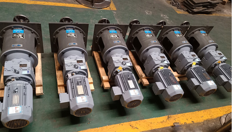 渦輪式攪拌器主要分為開啟式和圓盤式兩類,槳葉有平直葉、彎葉和折葉??墒挂后w均勻地由垂直方向的運動改變成水平方向的運動,自蝸輪流出的高速液流沿切線方向三開,從而在整個也體內得到劇烈攪動。攪拌器廣泛用于快速溶解和進行R化操作。攪拌設備的分類:按攪拌功能分:混合攪拌設備,攪動設備、懸浮攪拌設備、分散攪拌設備等。按攪拌方式分:機械攪拌設備、水力攪拌設備、氣體攪拌設備、磁力攪拌設備等。按攪拌目的分:溶藥攪拌設備、混合攪拌設備、絮凝攪拌設備、澄清攪拌設備、混合攪拌設備、絮凝攪拌設備,澄清攪拌設備,消化池攪拌設備和水下攪拌設備等。按液體的循環流動形式分:軸向流和徑向流攪拌器兩類。攪拌設備的組成一般由攪拌器、傳動裝置及攪拌軸系三大部分組成。攪拌器主要由攪拌槳和構件組成;傳動裝置由電動機、減速機以及支架等組成;攪拌軸系由攪拌軸、軸承和聯軸器等組成。水處理工藝對攪拌的要求可分為混合、攪動、懸浮、分散四種?;旌鲜峭ㄟ^攪拌作用,使與水的比重,黏度不同的物質在水中混合均勻;攪動是通過攪拌使混合液強烈流動,以提高傳熱、傳質的速率;懸浮是通過攪拌作用,使原來靜止在水體中可沉降的固體顆?;蛞旱螒腋≡谒w中;分散是通過攪拌作用,使氣體、液體或固體分散在水體中,加大不同物相的接觸面積,加.快傳熱和傳質過程。實現攪拌的目的是通過能.量傳遞。