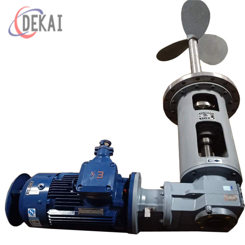 當釜內(nèi)物料為液.液或液.固多相體系時,圓周運動還會使物料出現(xiàn)分層現(xiàn)象,起著與混合相反的作用,故應采取措施抑制釜內(nèi)物料的圓周運動。推進式攪拌器的特點是液體循環(huán)量較大,但產(chǎn)生的湍動程度不高,常用于低粘度液體的反應,混合,傳熱以及固液比較小的溶解和懸浮等過程。渦輪式攪拌器工作原理:高速旋轉(zhuǎn)的葉輪使釜內(nèi)液體產(chǎn)生切向和徑向運動。沿葉輪半徑方向高速流出的液體推動釜內(nèi)液體流向釜壁,遇阻后分別形成上下兩條回路從新流回攪拌入口,從而形成總體循環(huán)流動。流出液體切向分速度會使釜內(nèi)液體產(chǎn)生圓周運動,應采取措施予以抑制。與推進式攪拌器相比,此類攪拌器所產(chǎn)生的總體循環(huán)流動的回路更為曲折,且由于出口流速較高,因而葉端附近的液體湍動更為強烈,從而產(chǎn)生較大的剪切力。